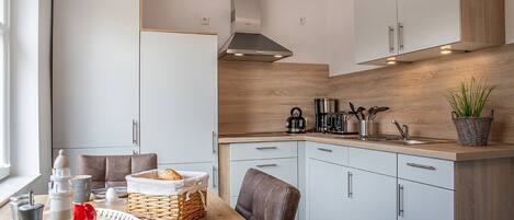 Modern living comfort: this friendly top-floor apartment has a separate entrance