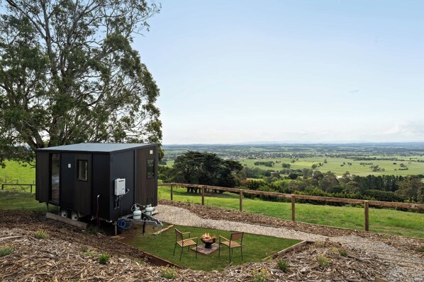 This 139-square-foot tiny home offers stunning views across the rolling hills of West Gippsland. From your bed, you can enjoy views of the district and Mt Baw Baw. Outside, unwind in your private garden with a cozy seating area and fire pit — perfect for relaxing evenings under the stars, warmed by the gentle crackle of a fire.