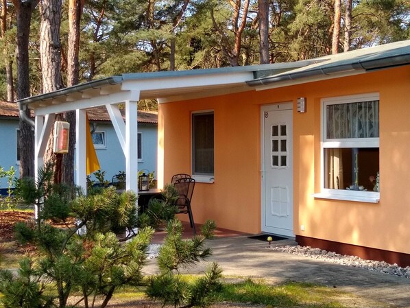 Nyligt omregnet feriebungalow med 2 soveværelser og stue med spiseplads og moderne tekøkken og bad / toilet. På terrassen er havemøbler til rådighed til afslapning. Bungalowen er moderne møbleret og udstyret med fladskærms-tv og radio med cd / USB. Bungalowen blev omfattende moderniseret i foråret 2017. ~ Værelser: 1 soveværelse med dobbeltseng 1,40m x 2,00m og skab (separat lamelrammer, separate madrasser) 1 soveværelse med køjeseng / dobbeltseng (ned 1,40m x 2,00m, top 0,90m x 2,00m) 1 Stue med tekøkken og spiseplads 1 badeværelse med toilet 1 terrasse med havemøbler 1 rejseseng og høj stol 1 vogne 1 parkeringsplads ~ BOOKING: 4 personer og et barn op til 2 år ~ Udstyr: veludstyret tekøkken med komfur, vask, køleskab, mikroovn, kaffemaskine, Kedel, brødrister, ægkoger, tallerkener, bestik, briller Stue med kabel-tv og radio med CD / USB, høj stol og rejseseng ~ ANDRE: - Ikke-ryger lejlighed - Husdyr er ikke tilladt - på forespørgsel, sengetøj til 8, - € p , Mulighed for at leje håndklæder - medbring venligst din egen - Sengetøj til barneseng er ikke tilgængelig - et fælles vaskerum og tørrerum med vaskemaskine (vaskemaskine til rådighed = 2 timer til 2,50 €) kan bruges. ~ Yderligere priser - Depositum 50, - € på stedet - Turist skat på stedet ~ Vores hjemmeside er usedomfewos. de