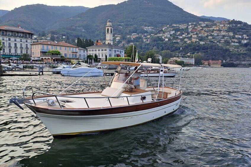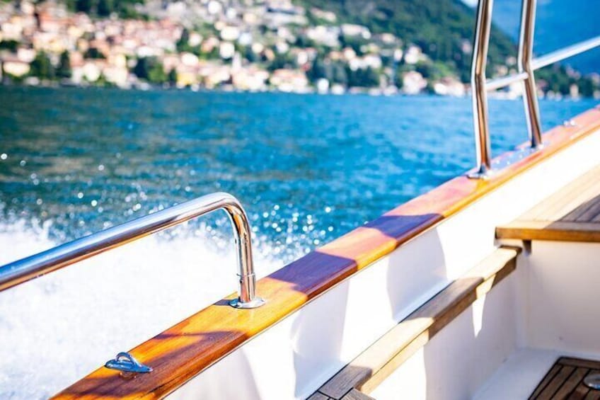 1H privat krydstogt på en smuk træspeedbåd på Comosøen