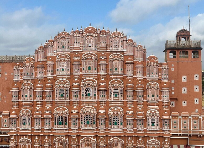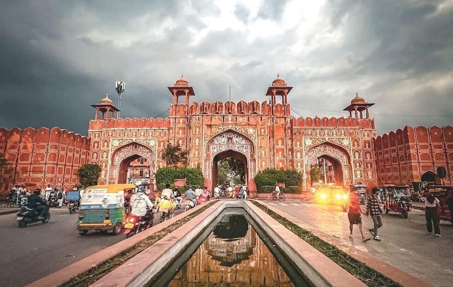 På denne luksustur giver vi dig et 4-stjernet kulturarvshotel overnatningssted med morgenmad og to dages tur med certificeret guide. Vores chauffør og guide kommer og henter dig med dit navneskilt. DAG 1: Hawa mahal, Panna meena ka kund, Amber fort, jal mahal, frokost, shopping, Jantar Mantar, City palace. DAG 2: Albert Hall-museet, Galta ji-templet (abetemplet), frokost, Nahargarh-fortet, Jaigarh-fortet.