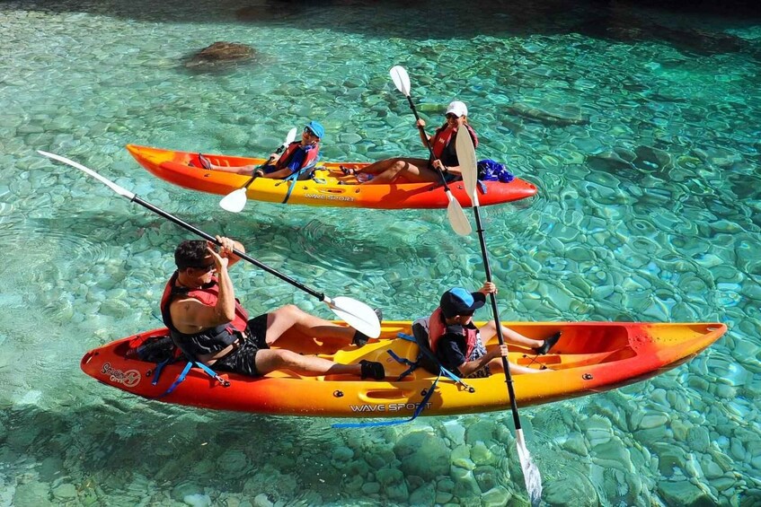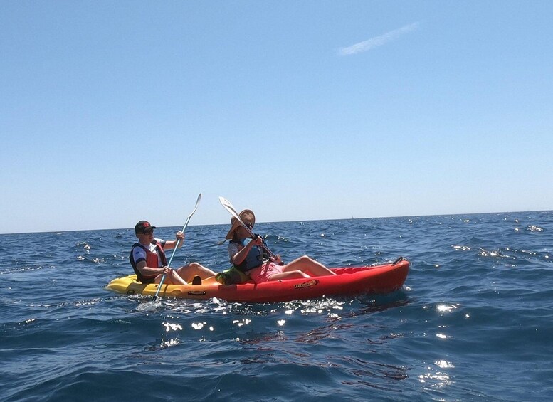 Lej og padl kajakker på den smukke sorte strand i den sydlige del af Santorini. ro altid i sikker afstand, hvor du er beskyttet mod forskellige speedbåde. undslippe folkemængderne og udforske sydkysten, mens du nyder den betagende natur i krystalklart vand.