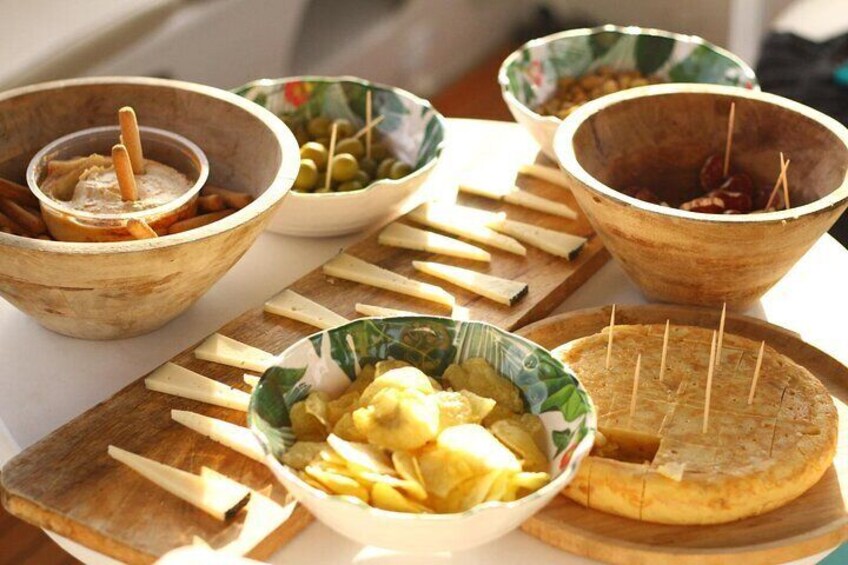 Udvalg af spanske tapas og lokale produkter