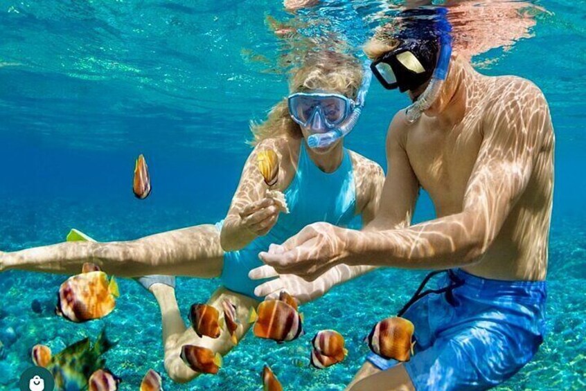 Udforsk undervandsverdenen uden at skulle bekymre dig under denne guidede snorkeloplevelse i Montego bay Jamaica. Fantastisk for begyndere og ikke-svømmere, dyk ned i et rige af pulserende eksotiske havliv. du vil se farverige fisk, fængslende havdyr og meget mere. Dedikerede instruktører vil endda filme dit eventyr som en gratis service, der leverer magien direkte til din telefon. Fordyb dig i bekvemmelighed, ekspertise og havvidundere. Efter din snorkeltur besøger vi Hip Strip i Montego-bugten for sightseeing og shopping.