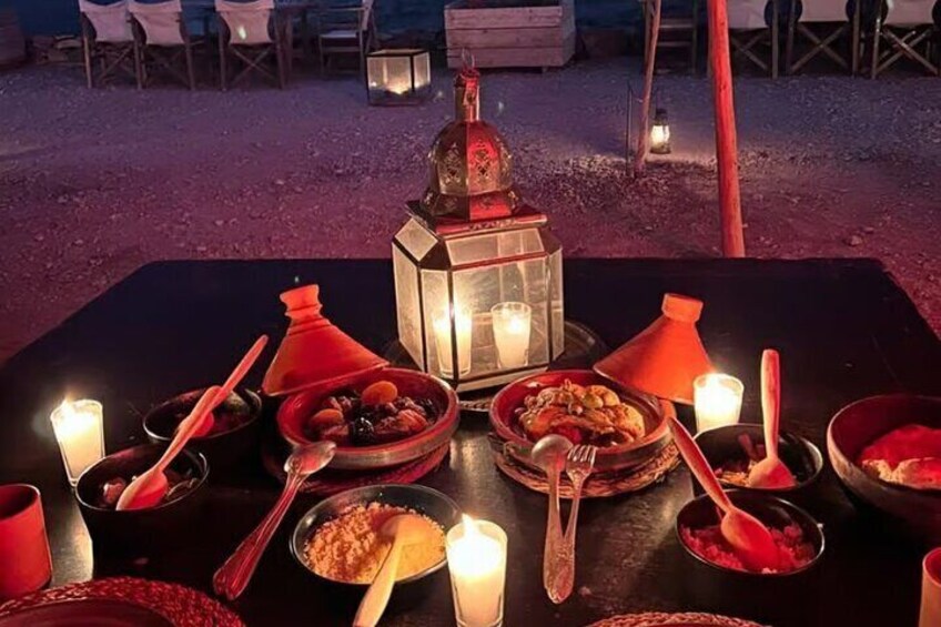 Agafay Desert: Sunset Camel Ride og middag, fyrværkeri (Marrakech)