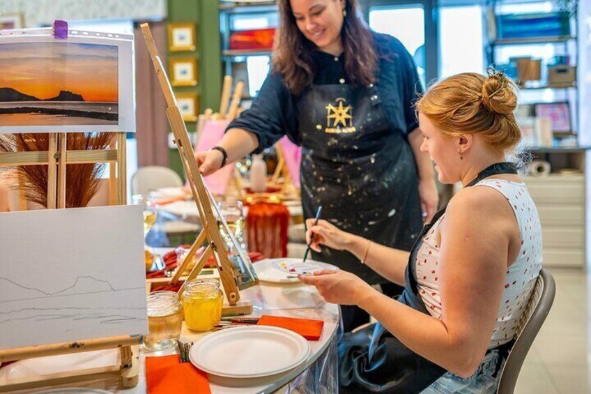 Under vores Altea på Canvas maleri session, vil du skabe din helt egen rejse souvenir et håndmalet kunstværk inspireret af Alteas ikoniske udsigter. Du behøver ikke være kunstner, vi vil vejlede dig gennem hele processen! Du vil lære at overføre et valgt billede til et canvasbræt, bruge børster med tillid og opbygge farver med enkle lagteknikker. Alt er forklaret trin for trin på en nem at følge og opmuntrende måde. Du vil vælge mellem to naturskønne udsigt over Altea en enkel og en lidt mere detaljeret afhængigt af, hvad der taler til dig mest. Uanset om det er de hvidvaskede bygninger med blå kupler eller kysten kysset af havet, vil du tage hjem et færdigt kunstværk, der afspejler din unikke rejse. Vi leverer alle materialer, og studiets atmosfære er rolig og inspirerende perfekt til par, venner eller solo rejsende, der søger en kreativ pause. Kom som du er og gå med en enestående souvenir, du lavede med dine egne hænder!