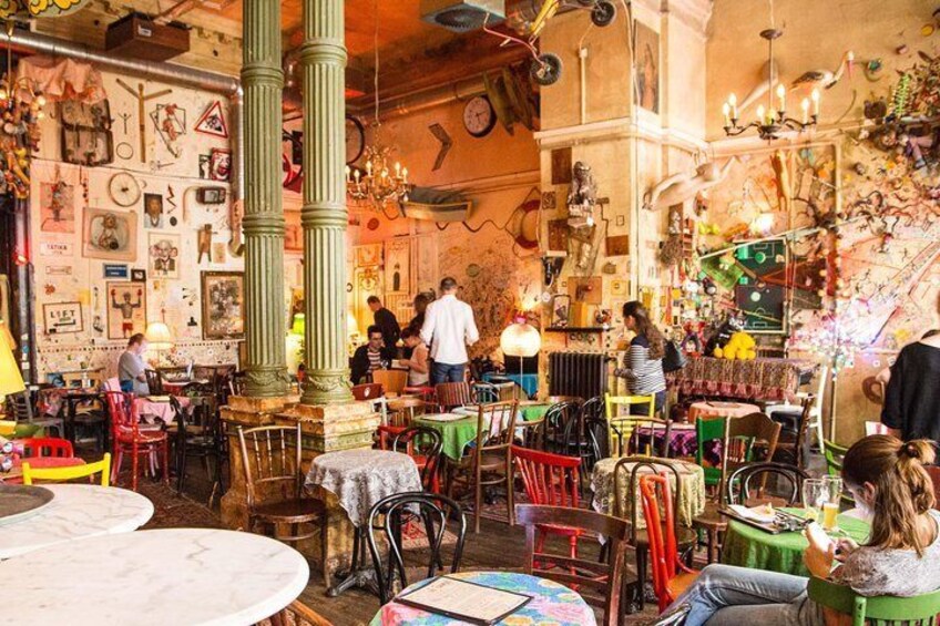 Besøg Szimpla Kert, hvor den første ødelagte bar kom til at være. Tag den pæne følelse og cool stemning, når du går forbi de mange forskellige værelser fyldt med skatter, feellys og mismatchede møbler. Start din private tur med et glas øl eller vin.