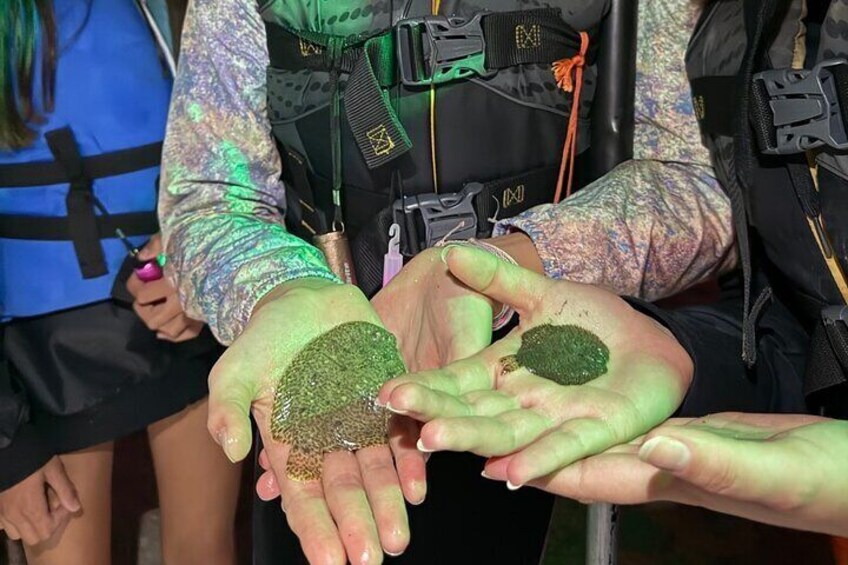 - Vi tilbyder en anden bioluminescerende aktivitet med kajakker, der har en højere vægttolerance. Se vores liste over aktiviteter.