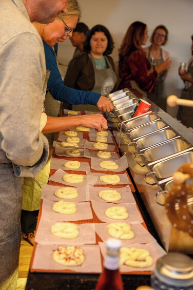 En mindeværdig to timers oplevelse, hvor du lærer historien, stilarterne og smagen af Bayerns yndlingssnack. Denne praktiske oplevelse vil få dig til at grine, når du ælter og drejer dine egne saltkringler, mens du får tips og tricks, historier og meget mere. Den perfekte måde at tilbringe en eftermiddag eller aften på. Når kurset er slut, får du saltkringler med hjem, valg af dippingsauce, et opskriftskort og meget mere.