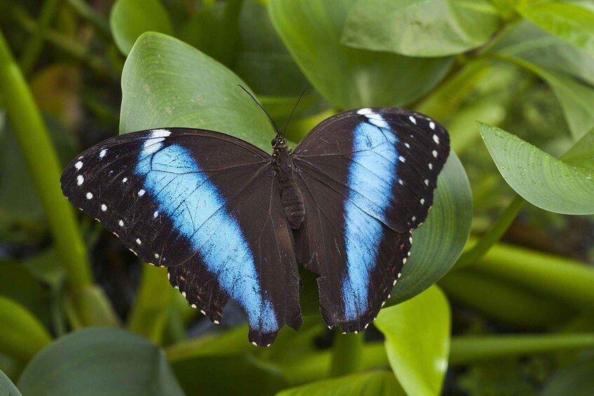 Fra dovendyrsreservatet kan du gå videre til sommerfuglehuset, hvor du kan se de sommerfugle, der lever i regnskoven, som f.eks. den farverige blå morphosommerfugl. Du vil også besøge orkide- og frøudstillingerne for at få mere at vide om de arter, der lever i regnskoven.