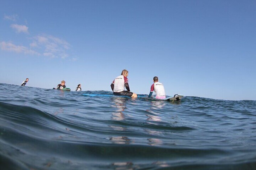 Denne surflektion starter med noget teori og vandsikkerhed. Du vil øve dig på land, inden du går i vandet. I vandet vil din surfinstruktør hjælpe dig med specifikke tips og lære dig, hvordan du fanger bølger.