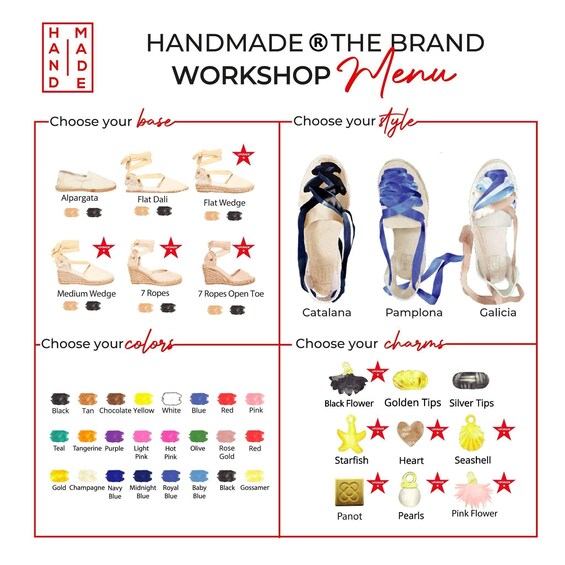 • Vælg størrelse, farve på blonder og stil til dit eget par espadrillos