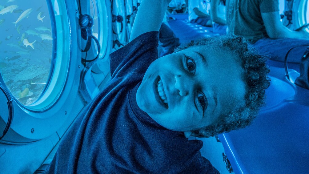 - Børn skal være mindst 36" høje og i stand til at gå op og ned ad en lodret stige for at køre i ubåden.