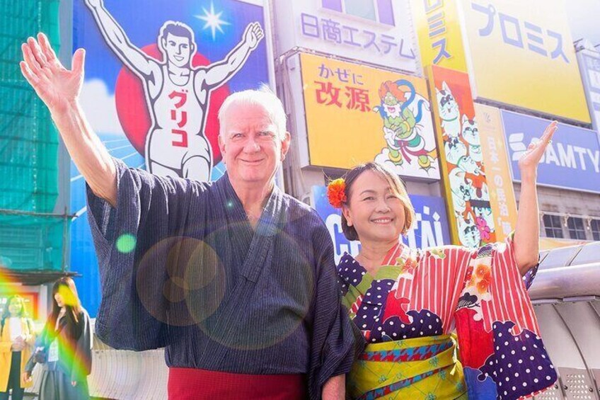 Kimono fotoshoot i Dotonbori: Du vil blive fotograferet iført en kimono i Dotonbori, det mest berømte turiststed. Transporten vil blive leveret med taxi.