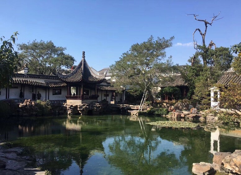 Efter frokost tager du til den udsøgte by Suzhou for at udforske den ikoniske Humble Administrator's Garden. Gå gennem de fortryllende landskaber, der er prydet med historiske huse, fredfyldte damme og snoede gangstier. Denne have, der betragtes som et mesterværk i moderne kinesisk havedesign, vil føre dig tilbage i tiden, når du slapper af i en pavillon ved den glitrende dam. Hvis du ønsker at besøge en anden have, skal du drøfte dine ønsker med din guide under rejsen.