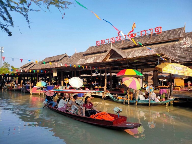 Dit eventyr begynder, når du slentrer gennem det livlige marked, hvor duften af frisklavede retter fra alle hjørner af Thailand fylder luften. Smag på regionale favoritter, fra krydrede karryretter fra syd til søde desserter fra nord. Se traditionelle thailandske danseforestillinger, og se dygtige håndværkere lave smukke kunstværker lige for øjnene af dig. Du kan vælge mellem to billetmuligheder: en almindelig indgangsbillet eller en billet, der inkluderer en fredelig tur i robåd, så du kan flyde gennem markedets charmerende vandveje og se markedet fra et andet perspektiv.
