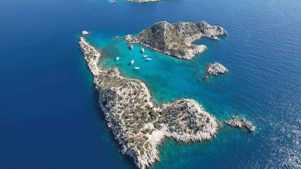 Efter en times pause i Yarilgan Bay går turen til næste stop, Twelve Isles. Højdepunktet på din Kas-bådtur er, at du kan se et skibsvrag, den fascinerende undervandskløft, farverige fisk og utallige undervandsskønheder på dette sted.