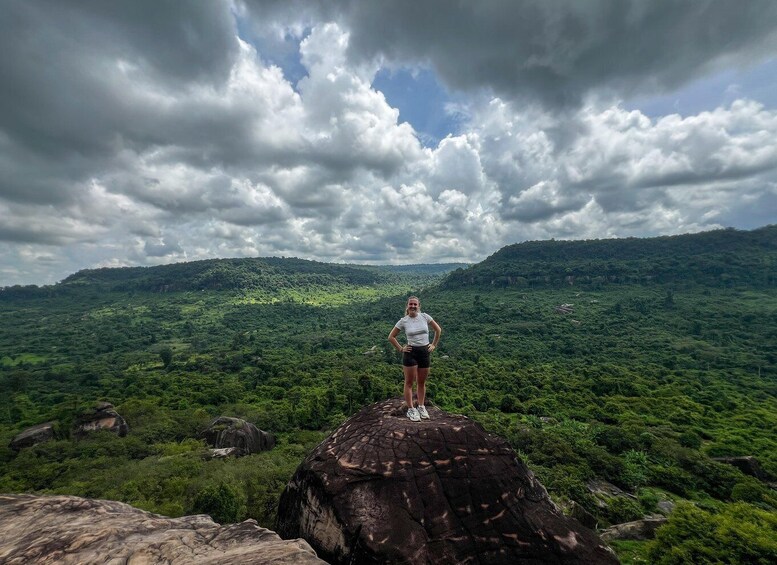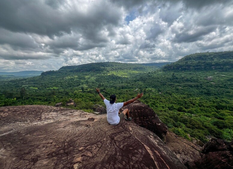 Bagefter fortsætter vi til bakketoppen af Phnom Kulen, og vores kyndige lokalguide tager dig med til de mest spektakulære turistattraktioner i nationalparken, herunder de største og smukkeste vandfald, Poeng Ta Kho (Amazing Cliff), den liggende Buddha-skulptur og River of Thousand Linga, som blev bygget i 802 e.Kr.