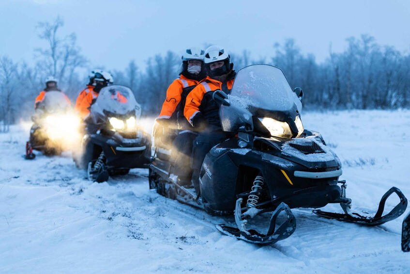 For at gøre dit arktiske eventyr problemfrit og stressfrit kommer vores snescooterture med all-inclusive-pakker. Vi tager os af transporten fra dit hotel og sørger for, at du bliver transporteret tilbage, når turen er slut. Vi stiller snescootere og sikkerhedsudstyr af høj kvalitet til rådighed og byder på en varm drik og en snack under turen.