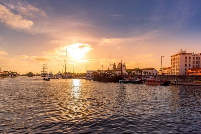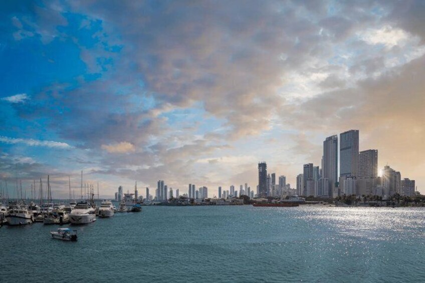 Gå en tur rundt i Cartagena-bugten og få en fantastisk udsigt over den gamle by og moderne skyskrabere. Beundre udsigten over havets skyline og skæret fra byens lys under solnedgang.